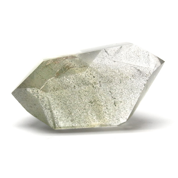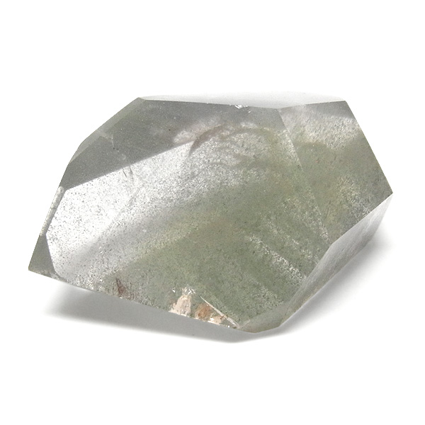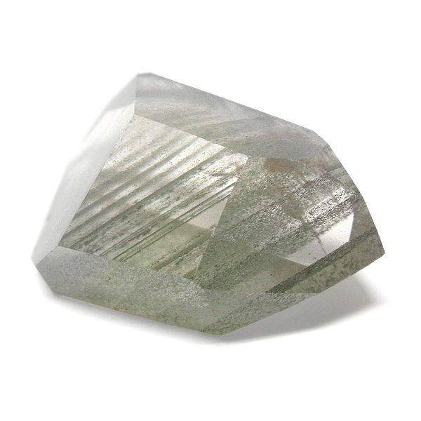 ファントムクォーツは、ガーデンクォーツの一種で、水晶が成長していく過程で、水晶の成長が一時的に停止した際に、その表面に別の鉱物などが付着し、また水晶が再び成長を始めると結晶の中に斜めや三角、山型の模様ができます。
