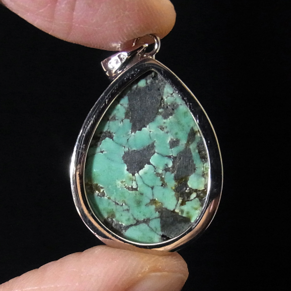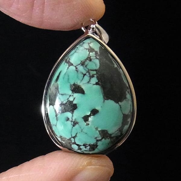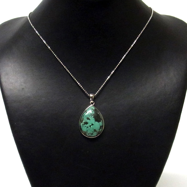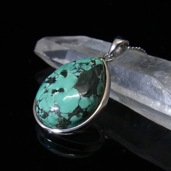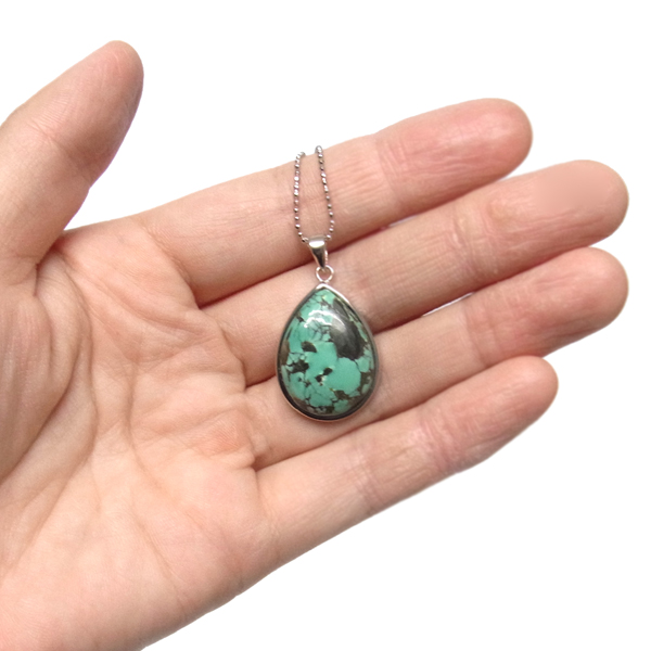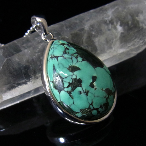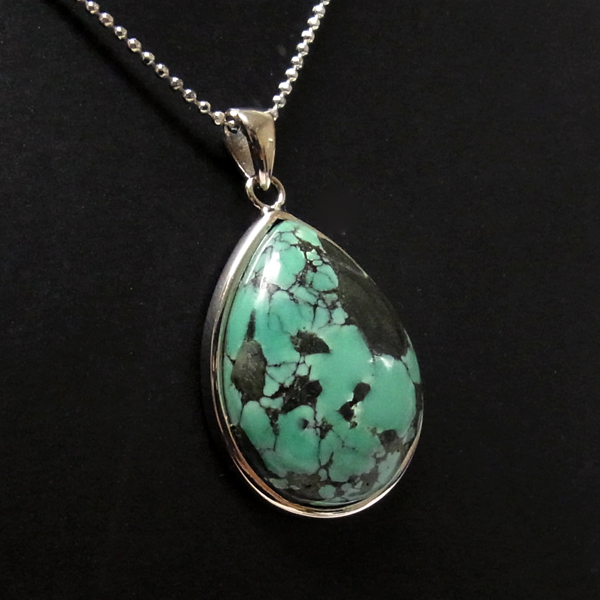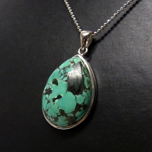 ターコイズを使用したペンダントトップです。美しい紋様が目を引くターコイズのペンダントトップで、天然石特有の自然が創り出した芸術です。贅沢に大き目のターコイズを使用しており、ペンダントトップとして存在感は抜群。ターコイズは魔除けの意味合いがあり、アクセサリーとしてとても人気が高いアイテムです。