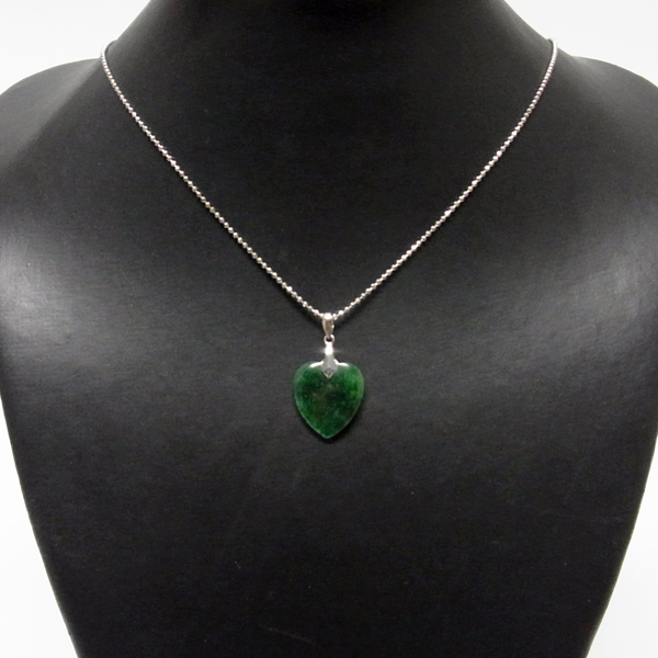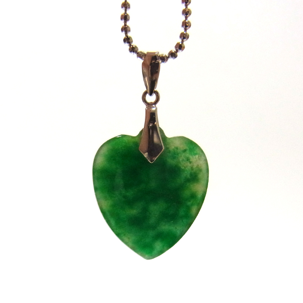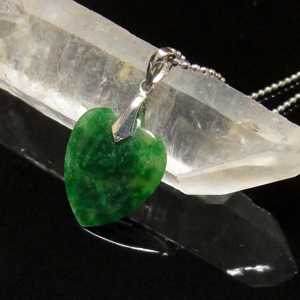 翡翠(ジェダイト)のペンダントトップです。透明感のある深いグリーンが魅力的。古くから勾玉や宝飾品に使われたことで有名な翡翠のアイテム。 透明感を引き出すために薄く加工された質の高い一点です。