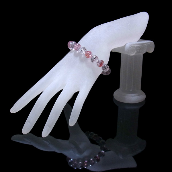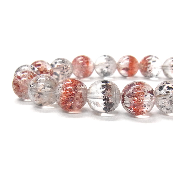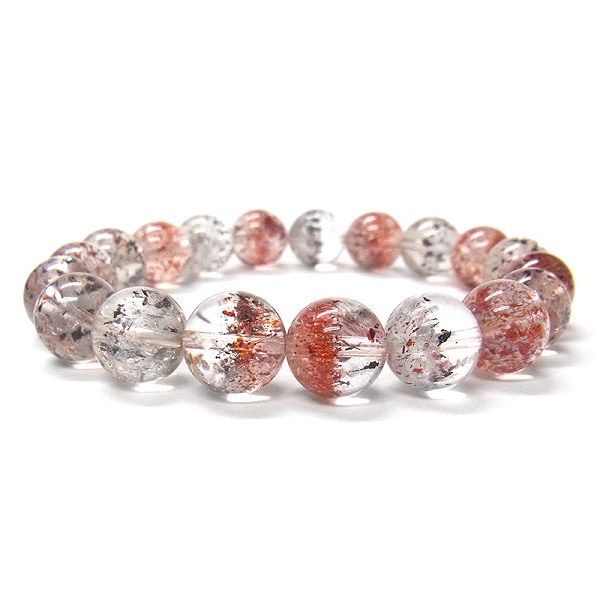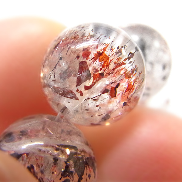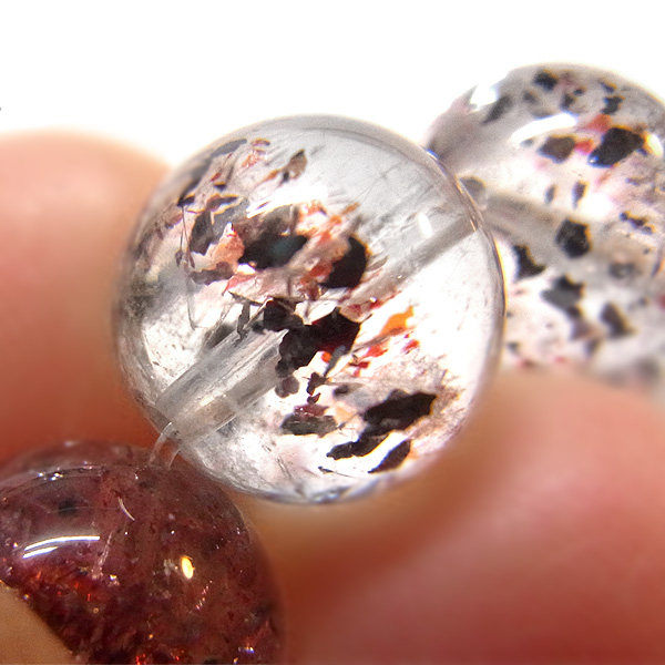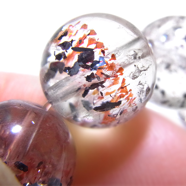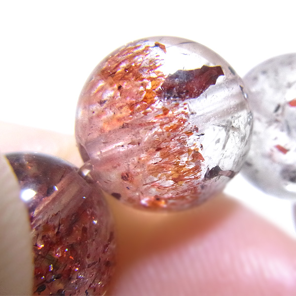 このレピドクロサイトが丸玉の半分側に内包されているものを集めたブレスレットです。