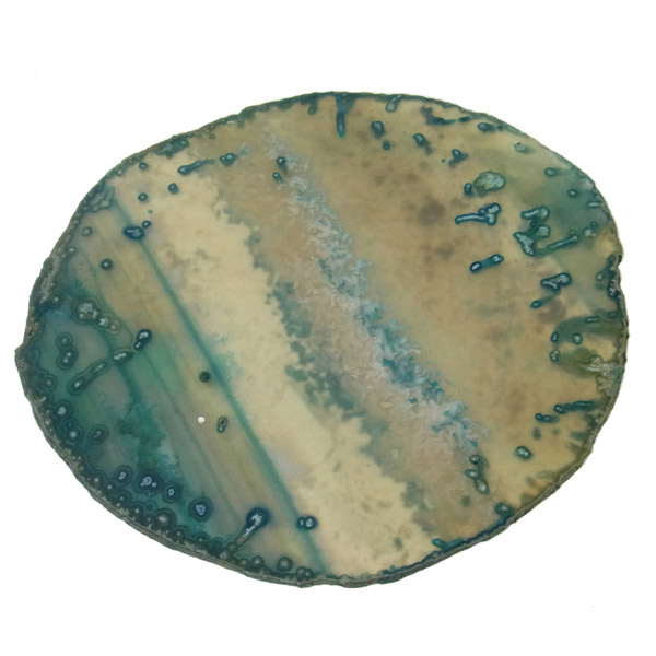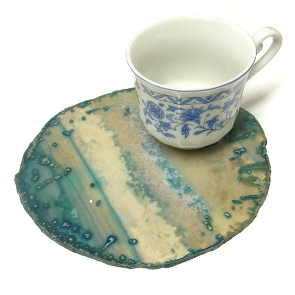 染色することにより、色の濃淡ができ、メノウの縞模様がより一層美しくなります。置物を置いたり、鉱物を置いたりのインテリアとしてや、グラスなどを置くコースターとしてもお楽しみ頂けます。