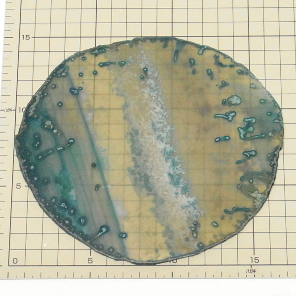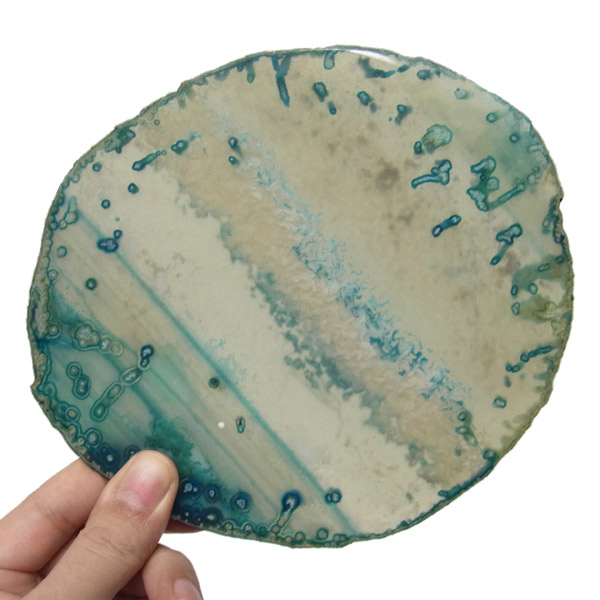 ブラジル産メノウを染色し、薄くスライスした色鮮やかなメノウスライスです。 カラーはグリーン、大きさは特大サイズです。