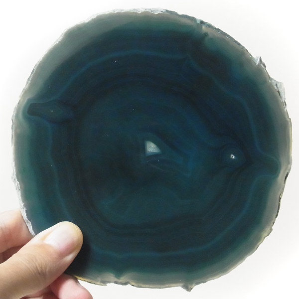 染色することにより、色の濃淡ができ、メノウの縞模様がより一層美しくなります。置物を置いたり、鉱物を置いたりのインテリアとしてや、グラスなどを置くコースターとしてもお楽しみ頂けます。