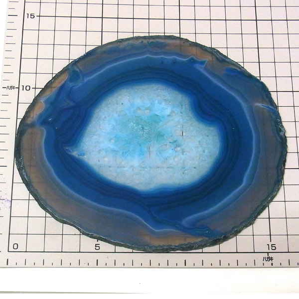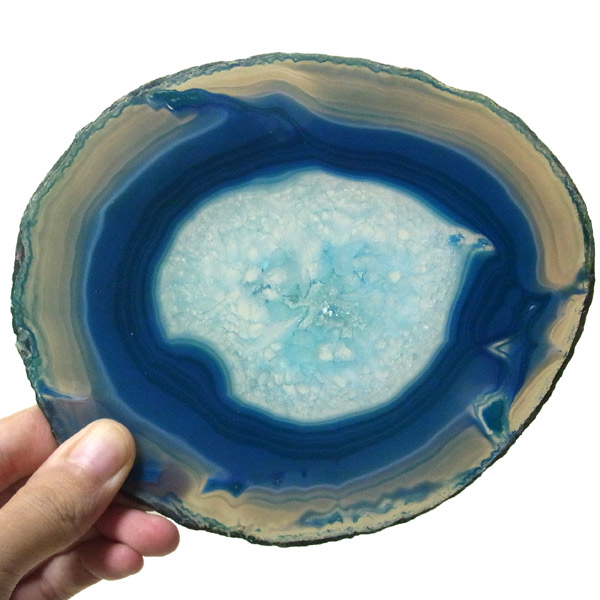 ブラジル産メノウを染色し、薄くスライスした色鮮やかなメノウスライスです。 カラーはブルーグリーン、大きさは特大サイズです。