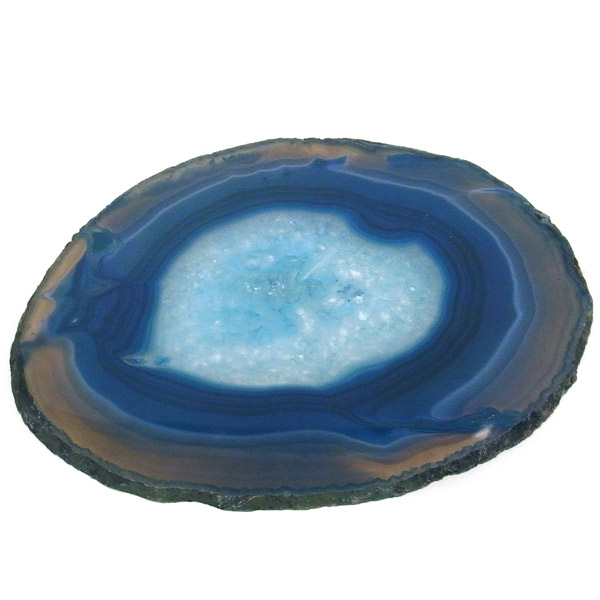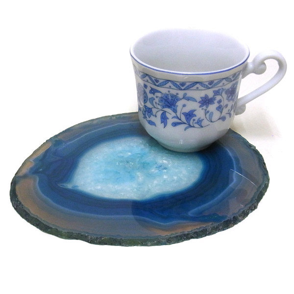 染色することにより、色の濃淡ができ、メノウの縞模様がより一層美しくなります。置物を置いたり、鉱物を置いたりのインテリアとしてや、グラスなどを置くコースターとしてもお楽しみ頂けます。