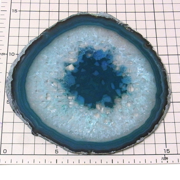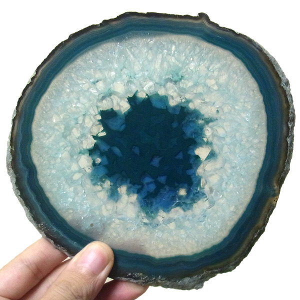 ブラジル産メノウを染色し、薄くスライスした色鮮やかなメノウスライスです。 カラーはブルーグリーン、大きさは特大サイズです。