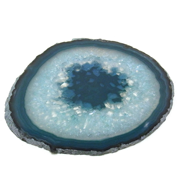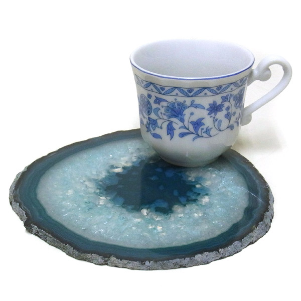染色することにより、色の濃淡ができ、メノウの縞模様がより一層美しくなります。置物を置いたり、鉱物を置いたりのインテリアとしてや、グラスなどを置くコースターとしてもお楽しみ頂けます。