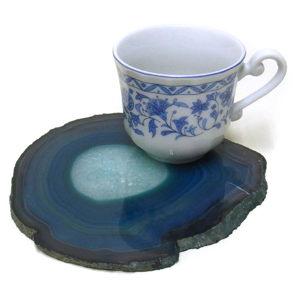 染色することにより、色の濃淡ができ、メノウの縞模様がより一層美しくなります。置物を置いたり、鉱物を置いたりのインテリアとしてや、グラスなどを置くコースターとしてもお楽しみ頂けます。