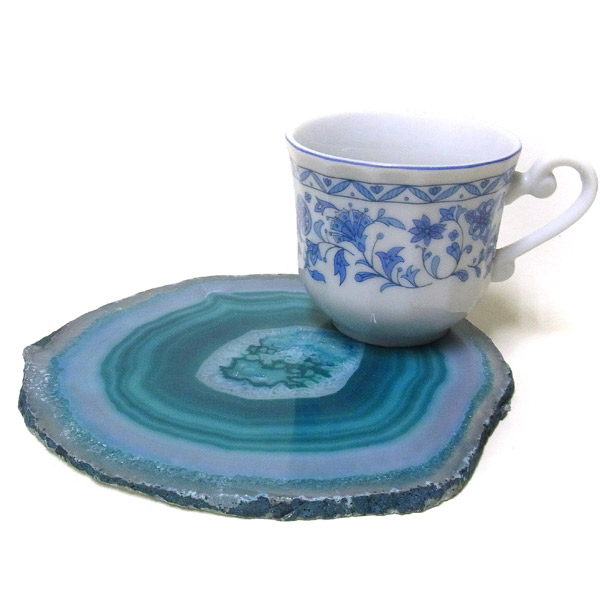 染色することにより、色の濃淡ができ、メノウの縞模様がより一層美しくなります。置物を置いたり、鉱物を置いたりのインテリアとしてや、グラスなどを置くコースターとしてもお楽しみ頂けます。