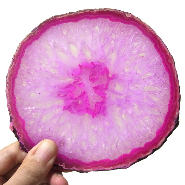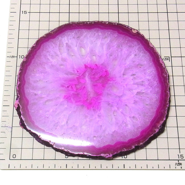 ブラジル産メノウを染色し、薄くスライスした色鮮やかなメノウスライスです。カラーはピンク、大きさは特大サイズです。