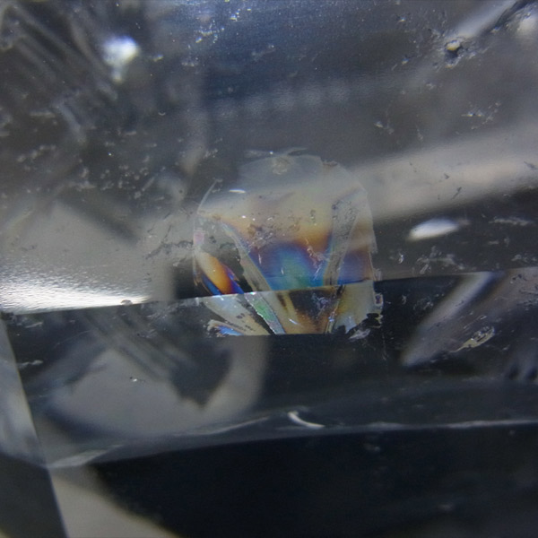 500gとかなり大きめなポイントで、その透明度は抜群です。また、様々な角度からレインボーが見え、存在感のある水晶ポイントです。