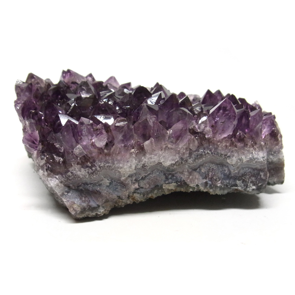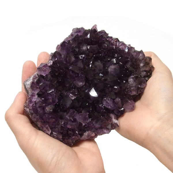 ブラジル産の大き目サイズのアメジストクラスターです。一つ一つの結晶が大きく成長したアメジストクラスターです。透明感があり、上質なアメジストの証である紫の色がしっかりと入った濃紫のクラスターです。