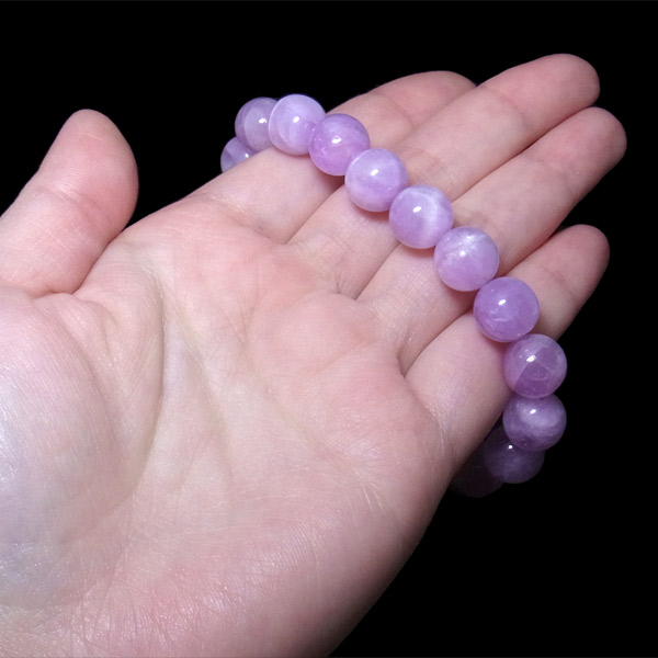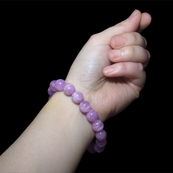 高品質ミルキークンツァイトのブレスレットです。クンツァイトは、1902年にカリフォルニア州で発見された比較的新しいパワーストーンですが、「スポデューメン」という鉱物の一種で、その中でピンク色のものをクンツァイトといいます。本商品は、ほんのりラベンダー色の優しい色合いのクンツァイトです。中には、キャッツアイが見られる箇所もございます。さり気なく手元を飾ることができ、大人の女性らしさが更に際立つでしょう。