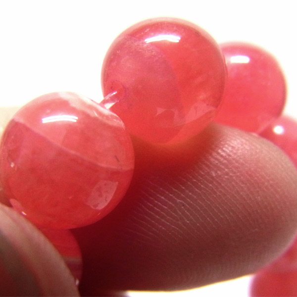 AAAインカローズのブレスレットです。 高品質のインカローズを使用したブレスレットで、発色も良く、透明度が大変高いビーズを使用しております。濃いピンクが美しく輝き、黒いインクルージョンは見られません。これ程の高品質ですが、特別にお手軽な価格となっております。