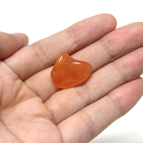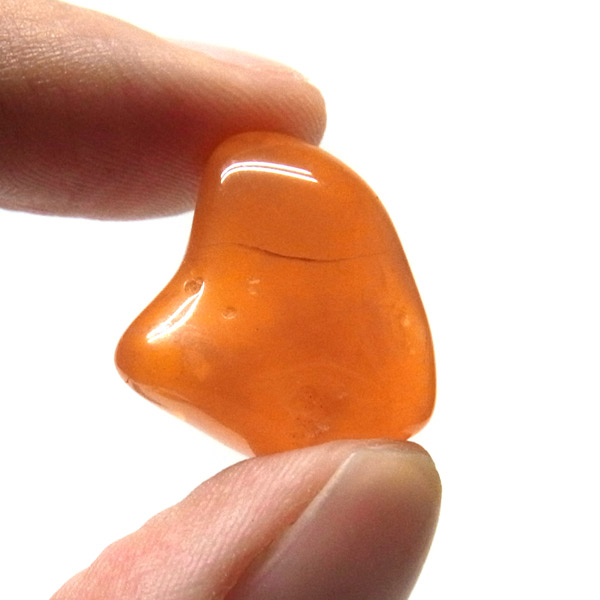 発色が良く、濃いオレンジが美しいカーネリアンのタンブルです。