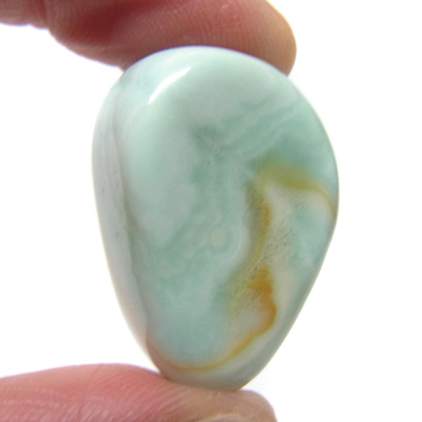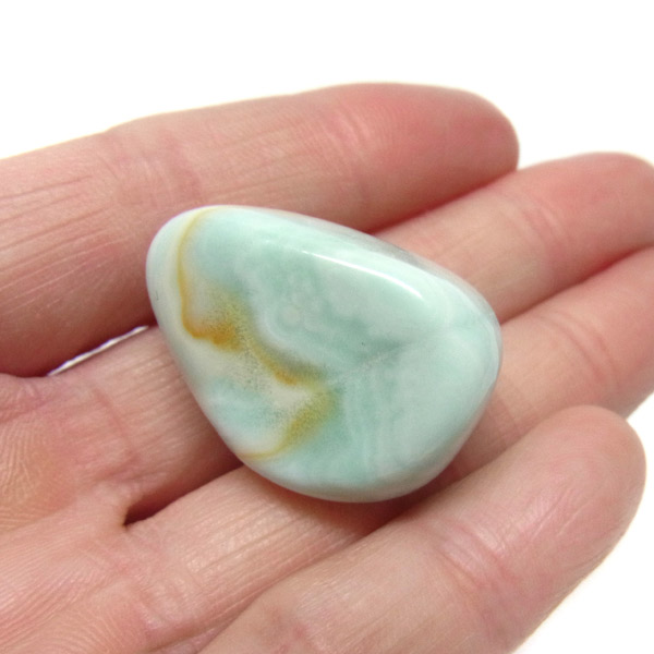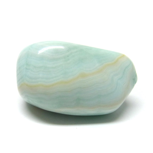 パキスタン産のグリーンカルサイトは、淡いグリーンが特徴的で癒されます。淡いグリーンともブルーともいえる色味で、縞模様もはっきりと見え、とてもかわいらしいです。ラリマーを彷彿とさせる優しい色味です。グリーンカルサイトはもともと埋蔵量が少ないのですが、現在、鉱山付近は紛争地帯のため、採掘活動を停止しています。そのため、今回ご紹介しているグリーンカルサイトは大変希少な石となっています。