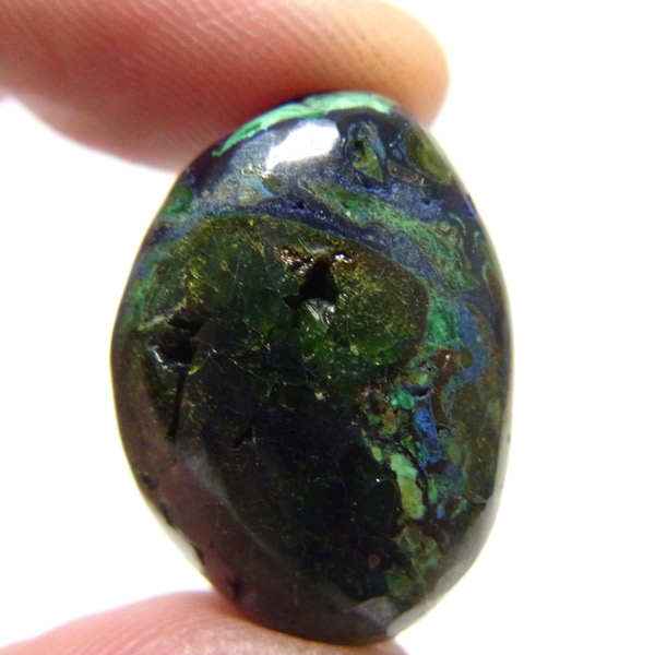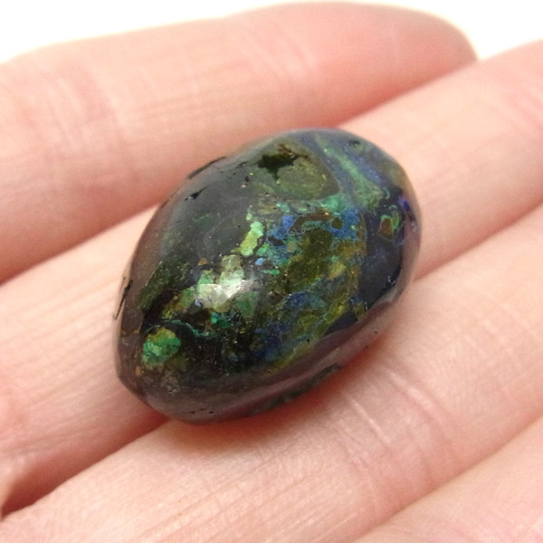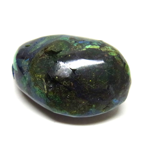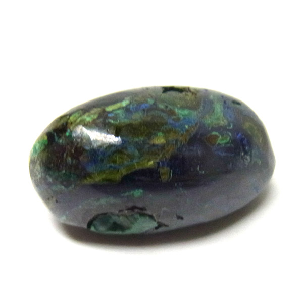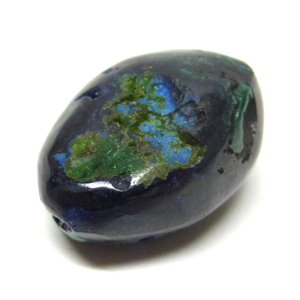 ペルー産のアズロマラカイト、タンブルです。美しい深いブルーをみていると吸い込まれそうな感覚さえ感じます。ブルーとグリーンのコンビネーションが芸術的でおもしろい風合いを醸し出しています。