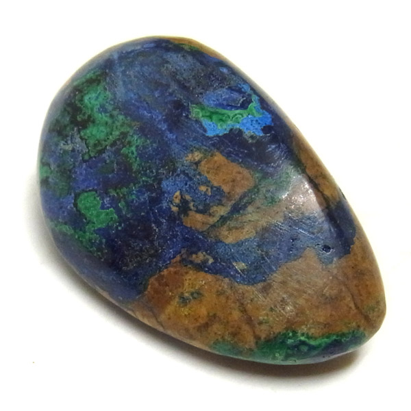 ペルー産のアズロマラカイト、タンブルです。美しい深いブルーをみていると吸い込まれそうな感覚さえ感じます。ブルーとグリーンのコンビネーションが芸術的でおもしろい風合いを醸し出しています。