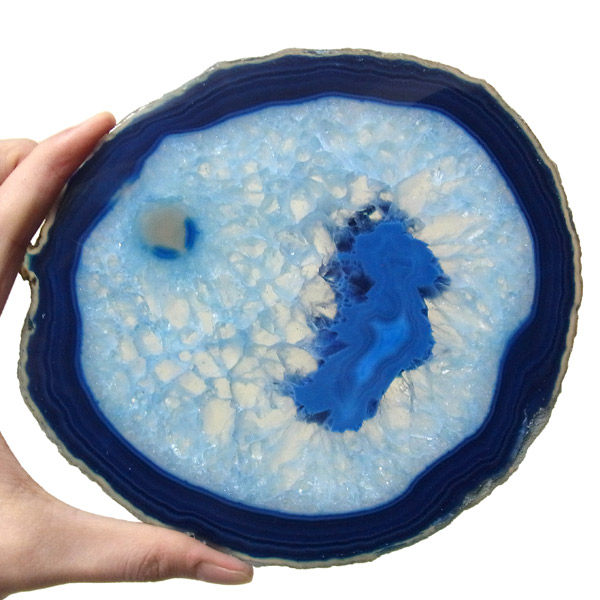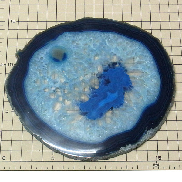 ブラジル産メノウを染色し、薄くスライスした色鮮やかなメノウスライスです。 カラーはブルー、大きさは特大サイズです。