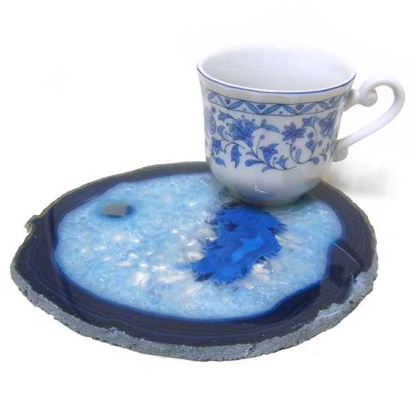 染色することにより、色の濃淡ができ、メノウの縞模様がより一層美しくなります。置物を置いたり、鉱物を置いたりのインテリアとしてや、グラスなどを置くコースターとしてもお楽しみ頂けます。