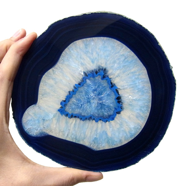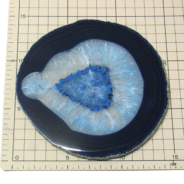 ブラジル産メノウを染色し、薄くスライスした色鮮やかなメノウスライスです。 カラーはブルー、大きさは特大サイズです。