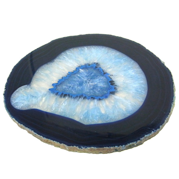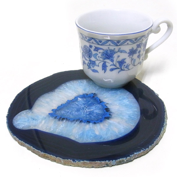 染色することにより、色の濃淡ができ、メノウの縞模様がより一層美しくなります。置物を置いたり、鉱物を置いたりのインテリアとしてや、グラスなどを置くコースターとしてもお楽しみ頂けます。