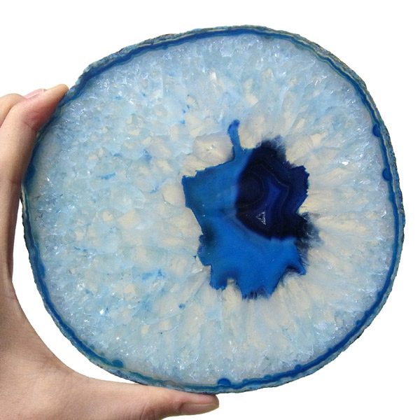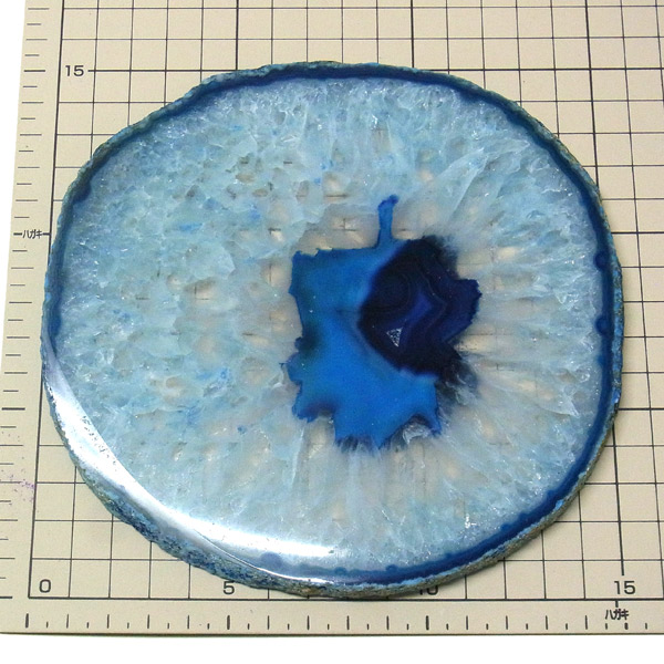 ブラジル産メノウを染色し、薄くスライスした色鮮やかなメノウスライスです。 カラーはブルー、大きさは特大サイズです。