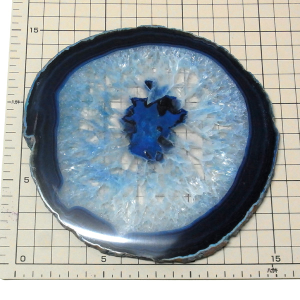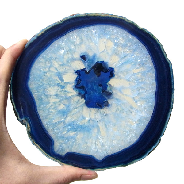 ブラジル産メノウを染色し、薄くスライスした色鮮やかなメノウスライスです。 カラーはブルー、大きさは特大サイズです。