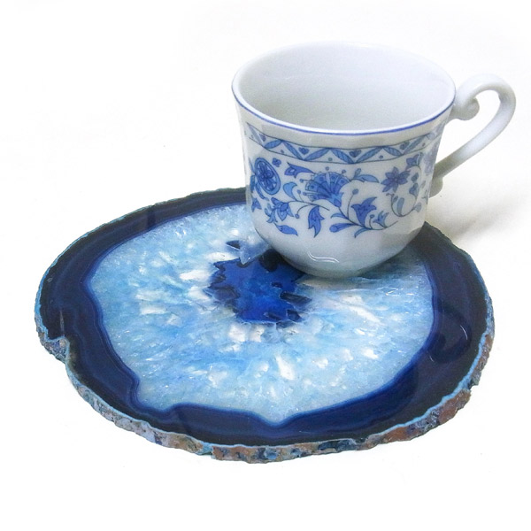 染色することにより、色の濃淡ができ、メノウの縞模様がより一層美しくなります。置物を置いたり、鉱物を置いたりのインテリアとしてや、グラスなどを置くコースターとしてもお楽しみ頂けます。