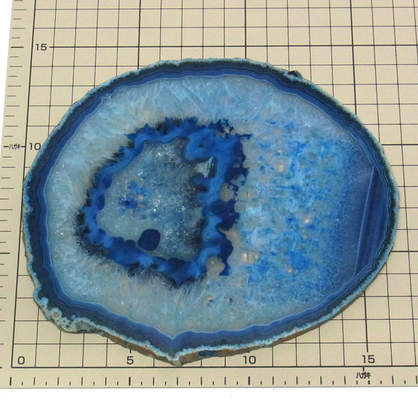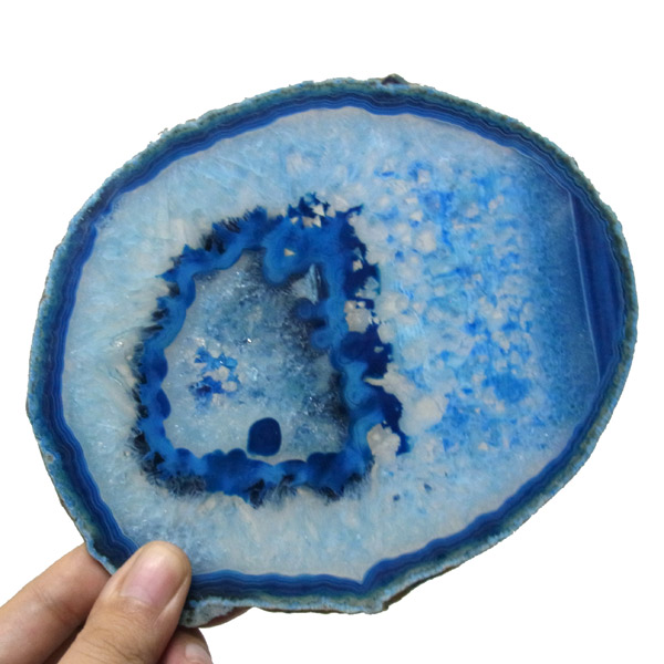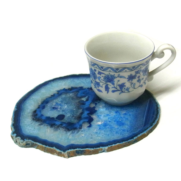 染色することにより、色の濃淡ができ、メノウの縞模様がより一層美しくなります。置物を置いたり、鉱物を置いたりのインテリアとしてや、グラスなどを置くコースターとしてもお楽しみ頂けます。