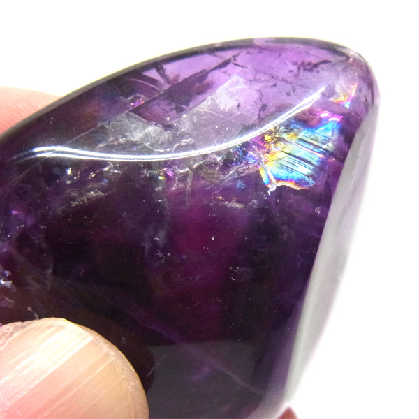 一見、濃いアメジストを思い起こすパープルですが、光の加減により濃いブルーが見られ、ブルーとパープルのグラデーションが美しく輝きます。