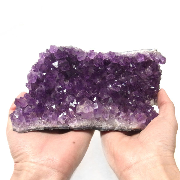 ブラジル産の大き目サイズのアメジストクラスターです。一つ一つの結晶が大きく成長したアメジストクラスターです。透明感があり、上質なアメジストの証である紫の色がしっかりと入った濃紫のクラスターです。
