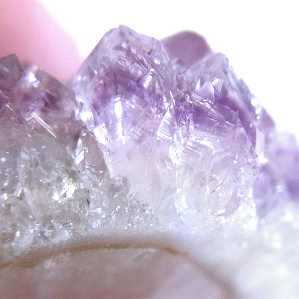 また普通のアメジストは、アメジストドームのように内側に向かって結晶が成長していくのですが、このアメジストは花開くように外側に向かって結晶が成長しています。