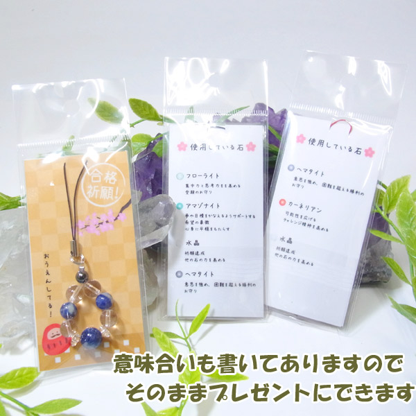合格祈願 天然石ストラップ 全3種 お守り 御守り プレゼント 受験勉強 面接 レッド ブルー グリーン パワーストーン