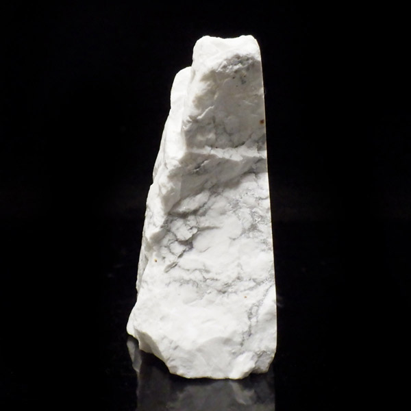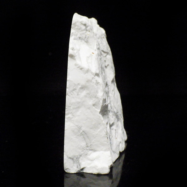 ホワイトハウライト(マグネサイト)の一面磨き原石です。研磨されて美しい前面部分と磨けば光る原石部分、両方が楽しめます。底面は平たくカットされ安定しており、大きさも置きやすいサイズ。インテリアとしてもとてもかわいい原石です。