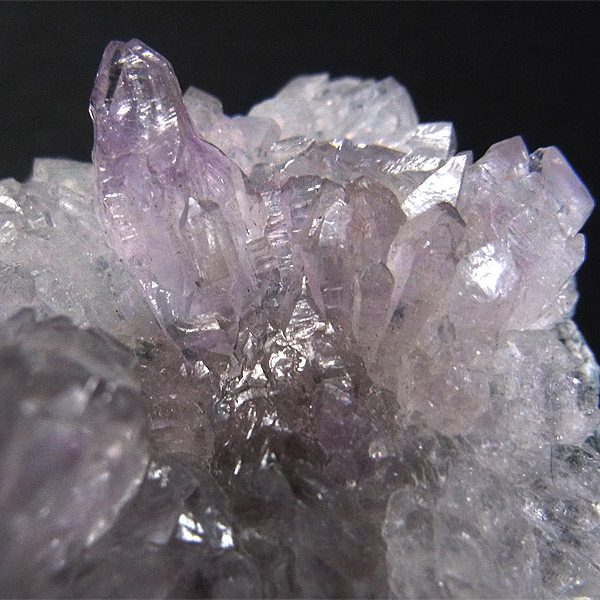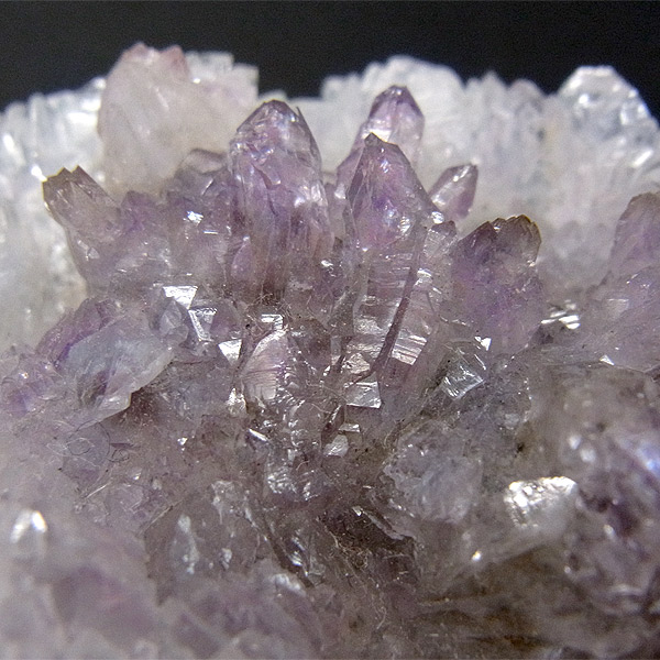 ブラジル産の大変上質なフラワーアメジストクラスターです。透明度が高く、キラキラと花びらが光り輝いています。 周りは透明~白で、花の中央部分がラベンダーアメジストとなっており、柔らかくて可憐な花を連想させられます。