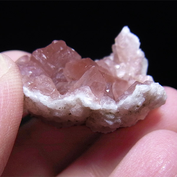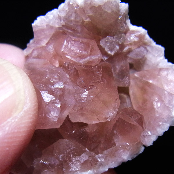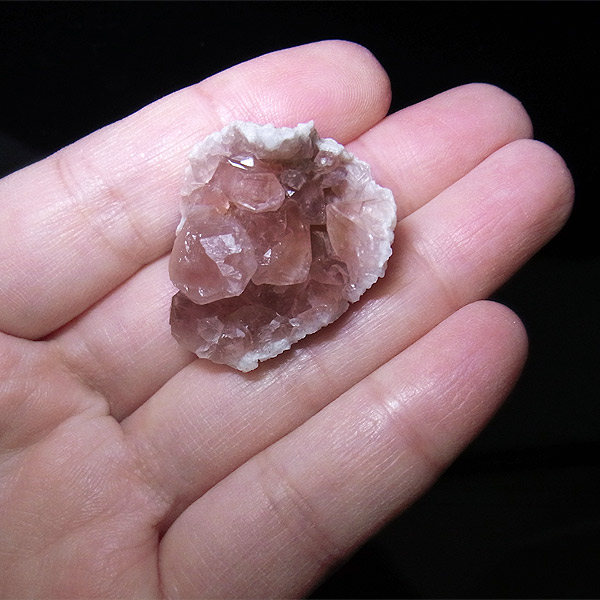 そのジオードを割ると中から通常は紫のアメジストが現れますが、稀にピンク色の結晶が出てきます。