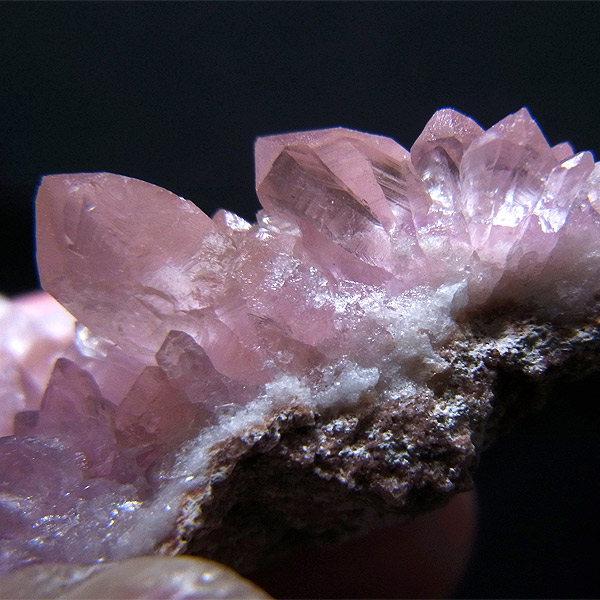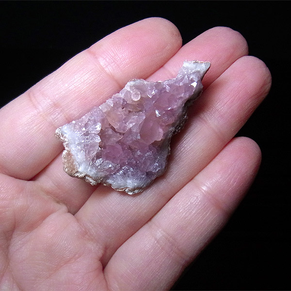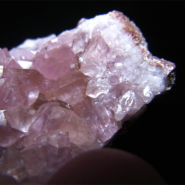 そのジオードを割ると中から通常は紫のアメジストが現れますが、稀にピンク色の結晶が出てきます。