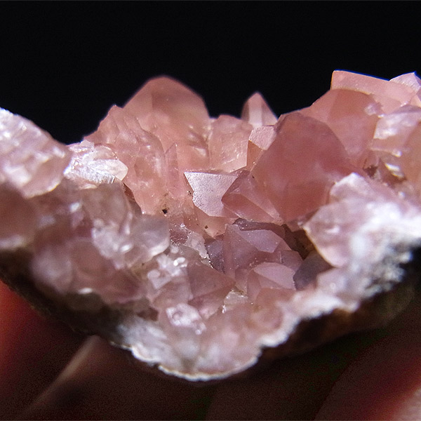 そのジオードを割ると中から通常は紫のアメジストが現れますが、稀にピンク色の結晶が出てきます。