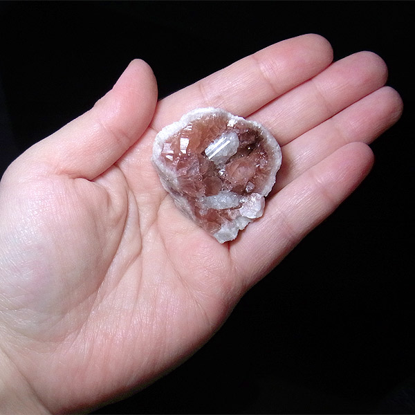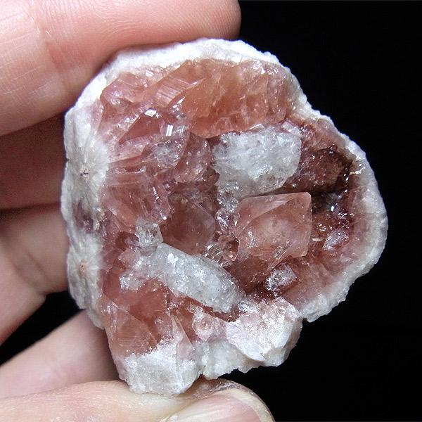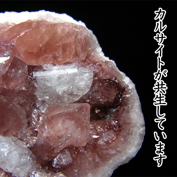 そのジオードを割ると中から通常は紫のアメジストが現れますが、稀にピンク色の結晶が出てきます。