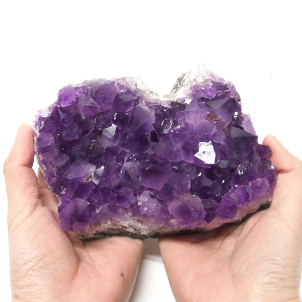 ブラジル産の大き目サイズのアメジストクラスターです。一つ一つの結晶が大きく成長したアメジストクラスターです。透明感があり、上質なアメジストの証である紫の色がしっかりと入った濃紫のクラスターです。