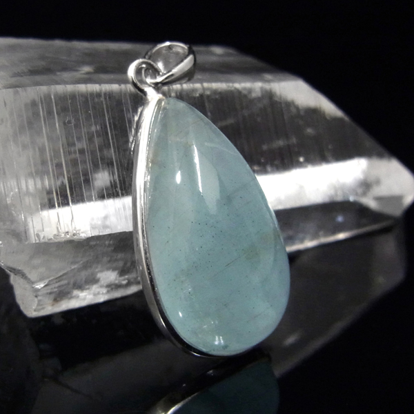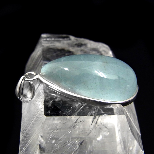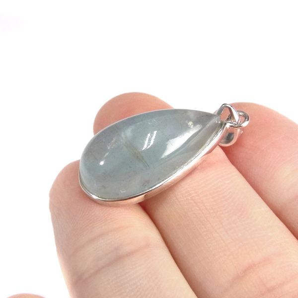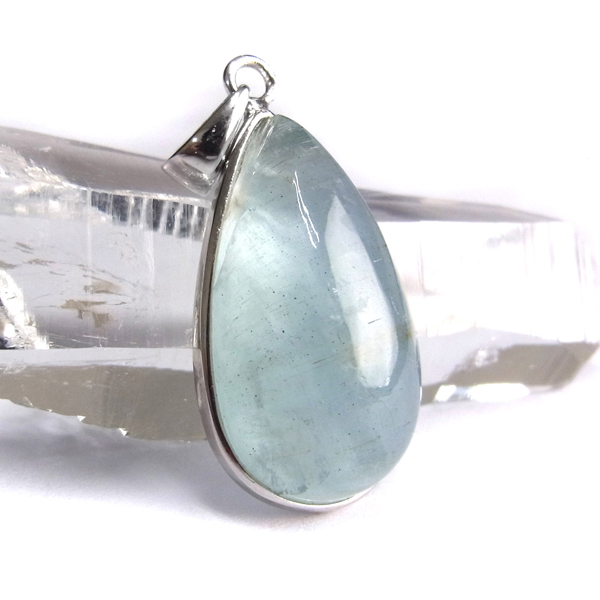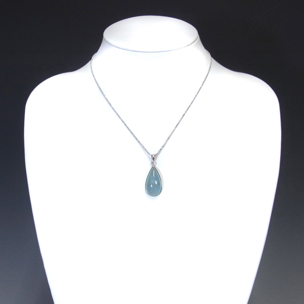 アフリカのモザンビーク共和国産、アクアマリン、ペンダントトップです。ナチュラルなアクアマリンで、発色も良く、光を透かすと表情が変わりかわいらしいです。ぷっくりカボションしずく型で、胸元での存在感がある満足なサイズ。人気の高いアクアマリン、透き通るブルーの癒しの色味が美しく魅力的です。