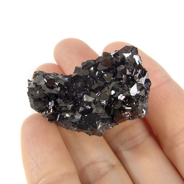 ロシア・ダルネゴルスク産のスファレライト原石です。 スファレライトはガレーナなどの他の鉱物とよく間違えられていたことからギリシャ語のあてにならないという意味のsphalerosにちなんで名付けられたそうです。スファレライトは和名で閃亜鉛鉱といいます。黒くて不透明なものはブラックジャックと呼ばれたりもします。キラキラとスファレライトの結晶が美しくかっこいい原石です。