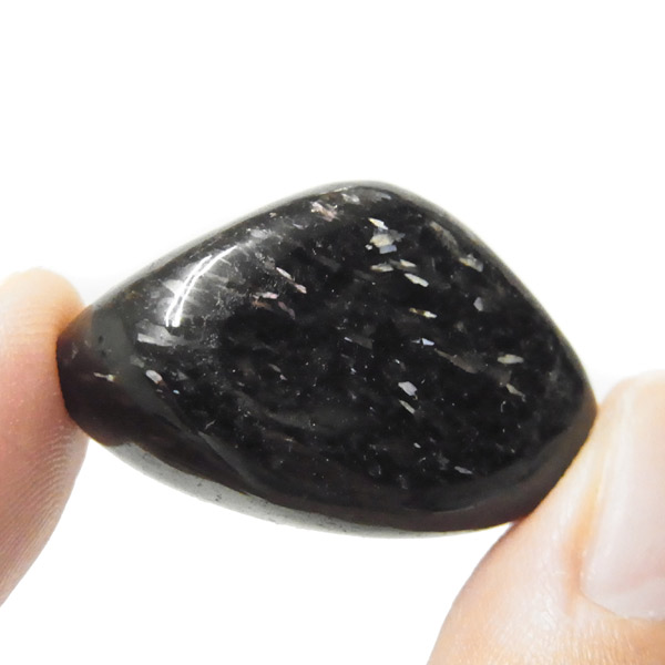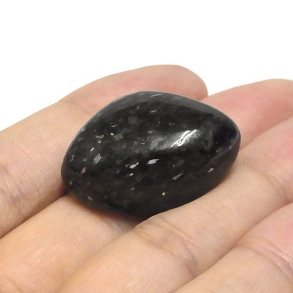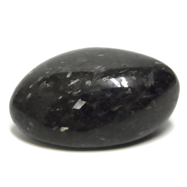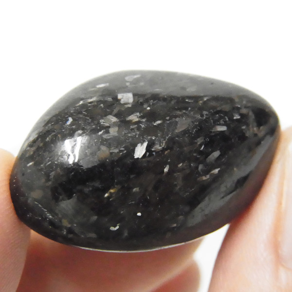 グリーンランド産の高品質ヌーマイト、タンブルです。 ヌーマイトは、1982年にグリーンランドのヌーク地方で発見され、地名に因んで名づけられました。ヌーマイト自体は30億年前から地球に存在したといわれる石で、気の遠くなるような年月を経て現代に現れた石だといわれています。和名は角閃石片麻岩。アンソフィライトやゲドライト、石英、など多様なミネラルを含んでいるといわれています。一見、真っ黒い石に見えますが、光の角度によって鮮やかなゴールド、グリーン、ブルーなどのさまざまな色の閃光を示します。グリーンランド産のヌーマイトの虹色は、極微視的なアンソフィライトとゲドライトの交互の溶出ラメラ構造から反射された光の干渉によるものということです。世界で最も美しいと知られるのがグリーンランドのヌーマイトといわれています。