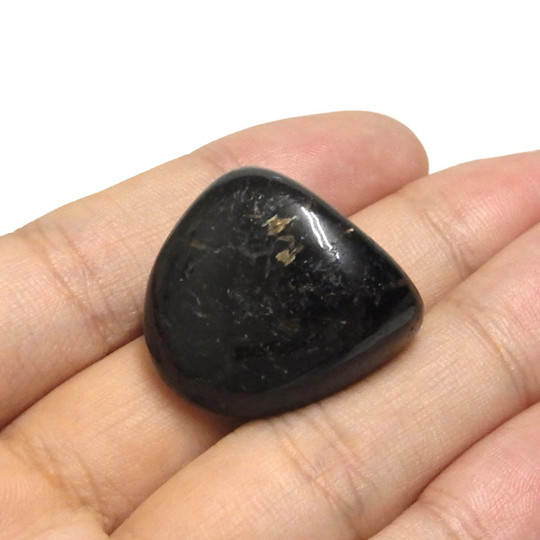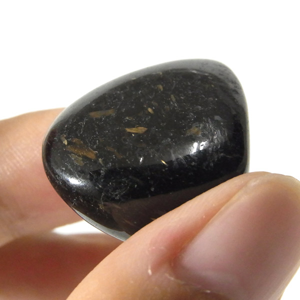 グリーンランド産の高品質ヌーマイト、タンブルです。 ヌーマイトは、1982年にグリーンランドのヌーク地方で発見され、地名に因んで名づけられました。ヌーマイト自体は30億年前から地球に存在したといわれる石で、気の遠くなるような年月を経て現代に現れた石だといわれています。和名は角閃石片麻岩。アンソフィライトやゲドライト、石英、など多様なミネラルを含んでいるといわれています。一見、真っ黒い石に見えますが、光の角度によって鮮やかなゴールド、グリーン、ブルーなどのさまざまな色の閃光を示します。グリーンランド産のヌーマイトの虹色は、極微視的なアンソフィライトとゲドライトの交互の溶出ラメラ構造から反射された光の干渉によるものということです。世界で最も美しいと知られるのがグリーンランドのヌーマイトといわれています。