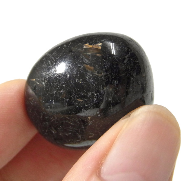 グリーンランド産の高品質ヌーマイト、タンブルです。 ヌーマイトは、1982年にグリーンランドのヌーク地方で発見され、地名に因んで名づけられました。ヌーマイト自体は30億年前から地球に存在したといわれる石で、気の遠くなるような年月を経て現代に現れた石だといわれています。和名は角閃石片麻岩。アンソフィライトやゲドライト、石英、など多様なミネラルを含んでいるといわれています。一見、真っ黒い石に見えますが、光の角度によって鮮やかなゴールド、グリーン、ブルーなどのさまざまな色の閃光を示します。グリーンランド産のヌーマイトの虹色は、極微視的なアンソフィライトとゲドライトの交互の溶出ラメラ構造から反射された光の干渉によるものということです。世界で最も美しいと知られるのがグリーンランドのヌーマイトといわれています。
