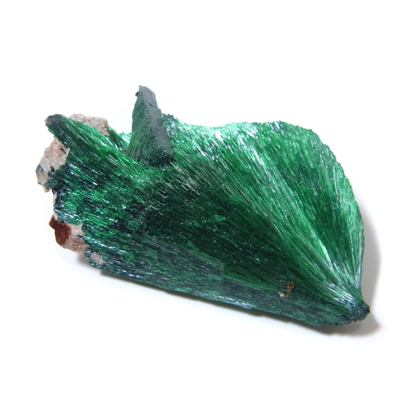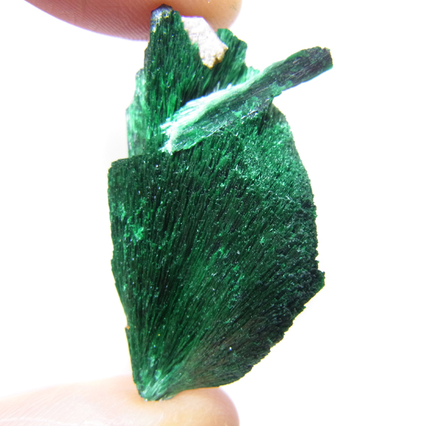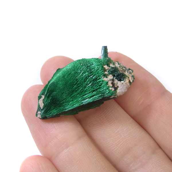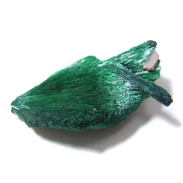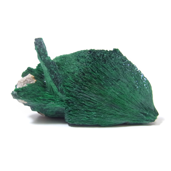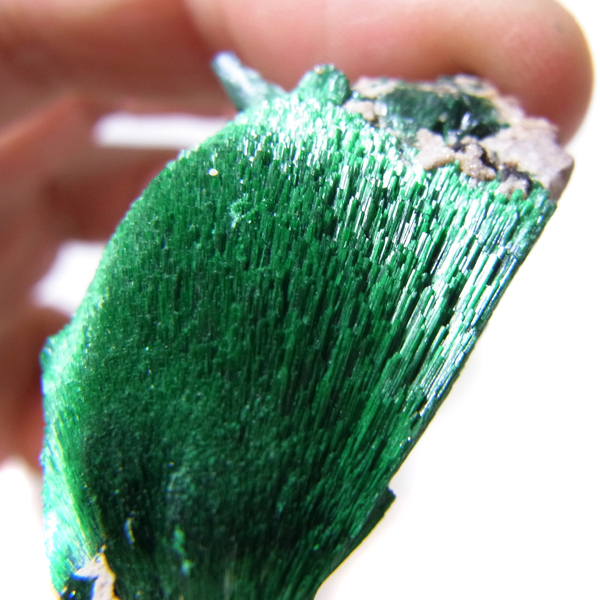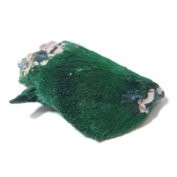 モロッコ産のマラカイト原石です。 繊維状の結晶が集まった美しい一品で、ベルベットのような光沢があります。艶やかに光るきれいなグリーンで、一見脆そうに見えますが触ってみるとしっかりした結晶です。まさに孔雀の羽のようにビューティフル、おすすめです。