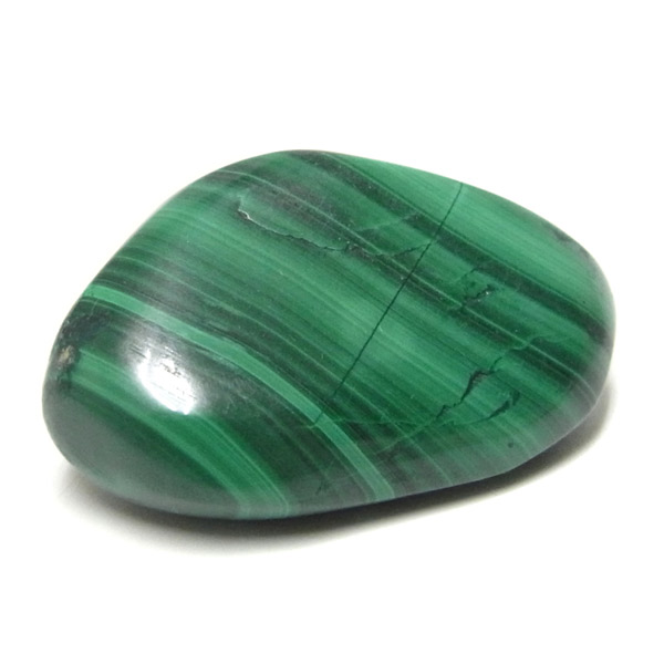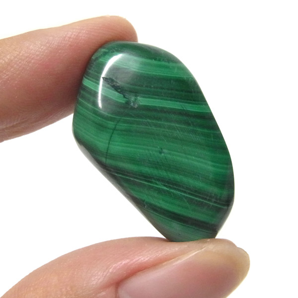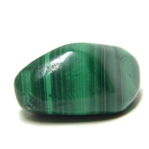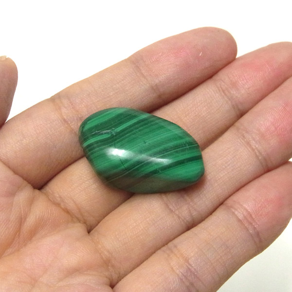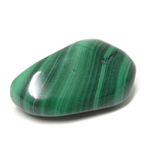 コンゴ産のマラカイト、タンブルです。濃いグリーンカラーに独特の模様を持つマラカイト。 「マラカイトグリーン」という色名になっているほど、特徴的で美しい緑色です。 マラカイトの産地はアメリカ・ロシア・コンゴ・ザンビアなどですが、中でもコンゴ産のマラカイトは非常に美しいものが採れるため、コレクターからも支持されています。