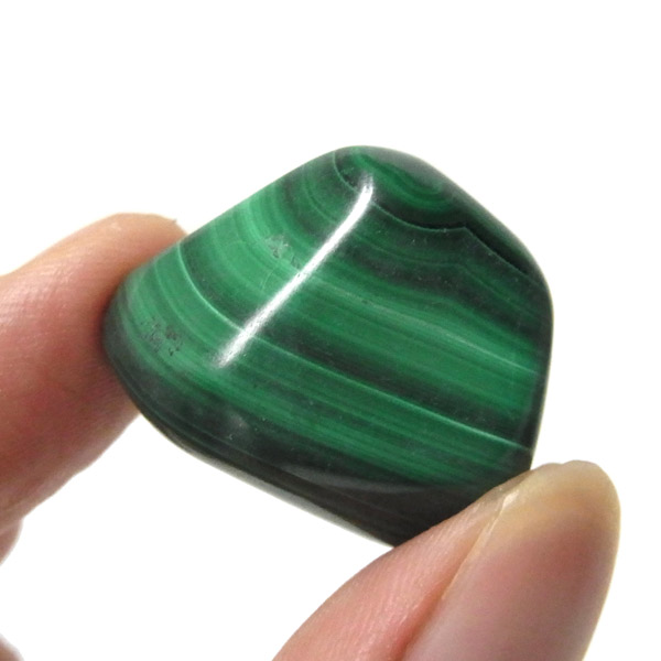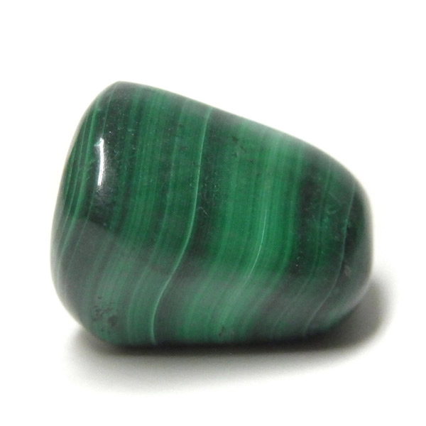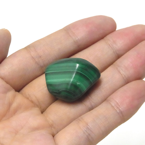 コンゴ産のマラカイト、タンブルです。濃いグリーンカラーに独特の模様を持つマラカイト。 「マラカイトグリーン」という色名になっているほど、特徴的で美しい緑色です。 マラカイトの産地はアメリカ・ロシア・コンゴ・ザンビアなどですが、中でもコンゴ産のマラカイトは非常に美しいものが採れるため、コレクターからも支持されています。