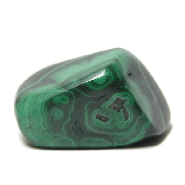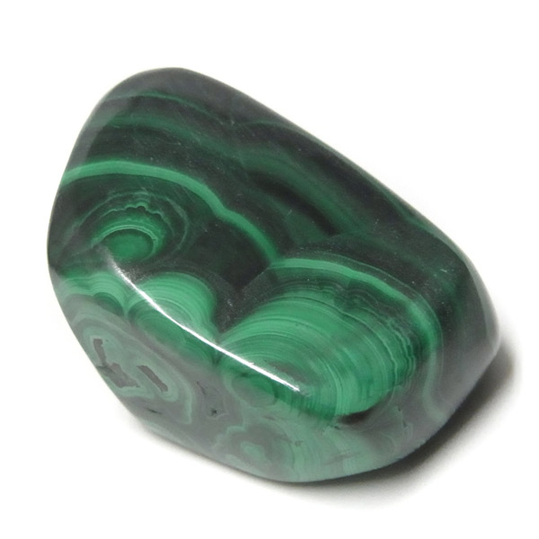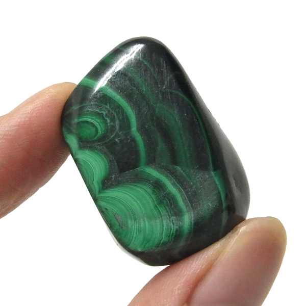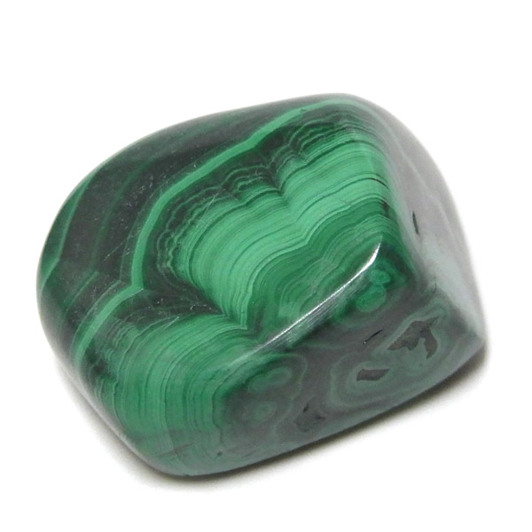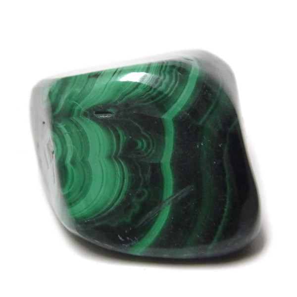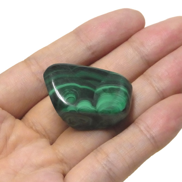 コンゴ産のマラカイト、タンブルです。濃いグリーンカラーに独特の模様を持つマラカイト。 「マラカイトグリーン」という色名になっているほど、特徴的で美しい緑色です。 マラカイトの産地はアメリカ・ロシア・コンゴ・ザンビアなどですが、中でもコンゴ産のマラカイトは非常に美しいものが採れるため、コレクターからも支持されています。